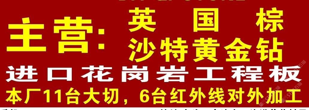 本公司主營:英國棕、黃金鉆,藍(lán)眼睛,安格拉黑、黃蝴蝶、淺紫點(diǎn)、進(jìn)口花崗巖等,地址:南安市水頭鎮(zhèn)高速出口洋美茂高鐵橋下!歡迎前來咨詢