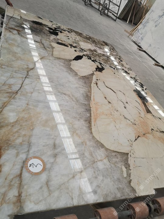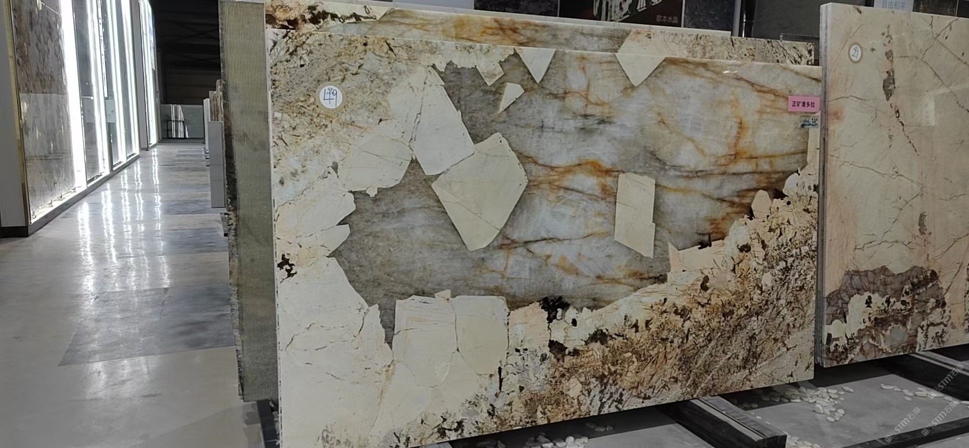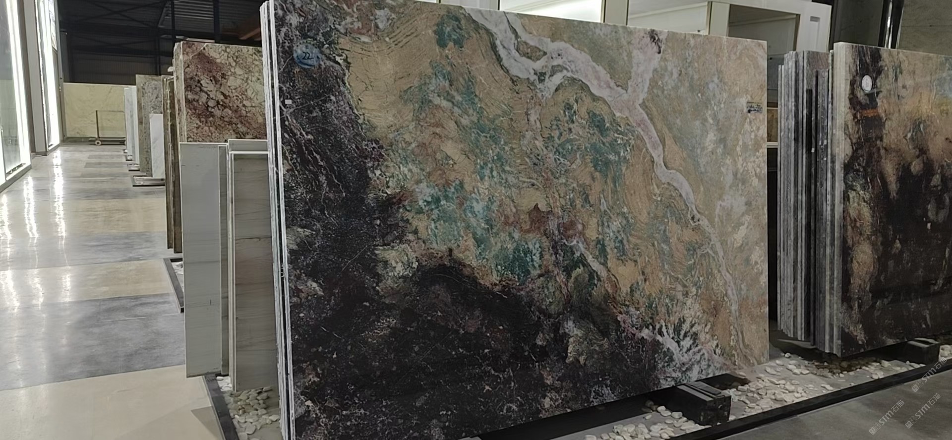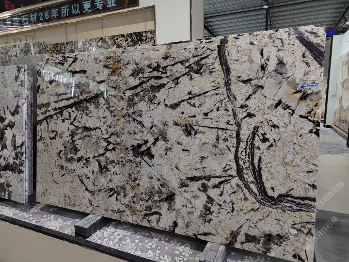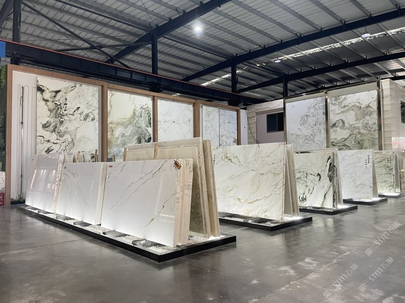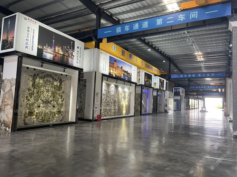 新景印象石畫館常年庫存玉石、奢石、山水畫,現(xiàn)貨大板近15萬平方,品種齊全,庫存豐富,可滿足不同客戶群各個(gè)價(jià)位板面需求。為客戶提供了更全面的選擇空間。未來,這里更將被打造成為華東地區(qū)天然背景石材選材中心。\