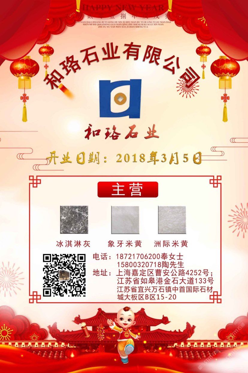 安徽和珞實業(yè)有限責(zé)任公司、注冊資金5千萬元整、主營:伊朗礦山、洲際米黃、象牙米黃、冰淇淋灰、香草米黃!承接市政工程及酒店賓館、別墅家裝一條龍服務(wù)!抱團(tuán)取暖、共贏發(fā)展!