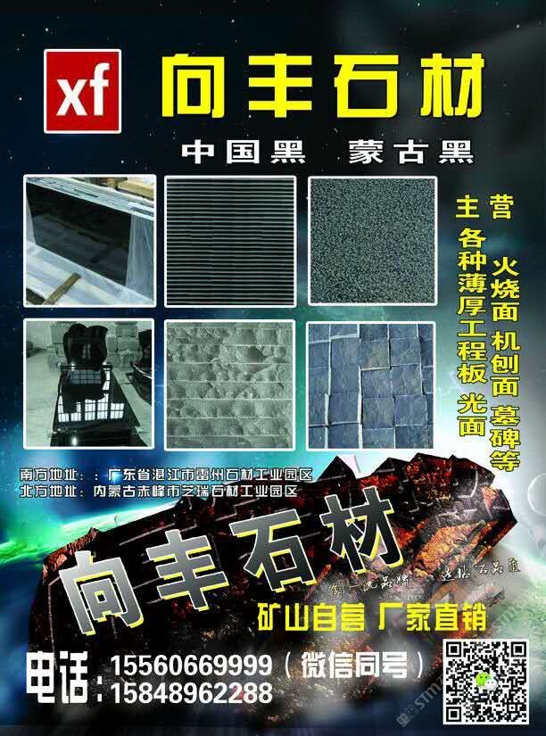 向豐石材有限公司成立于2005年,是一家礦山自營的蒙古黑板材加工企業(yè)!主營項(xiàng)目:各種薄厚工程板、光面、火燒面、機(jī)刨面、荔枝面、斧鑿面、墓碑等。向豐石材以“客戶至上信譽(yù)”的經(jīng)營理念,先進(jìn)的技術(shù)和現(xiàn)代化管理為基石,不斷的開拓創(chuàng)新與時(shí)俱進(jìn)?,F(xiàn)已經(jīng)發(fā)展為南北方跨區(qū)域生產(chǎn)企業(yè),至今完成多個(gè)大型項(xiàng)目并多次中標(biāo)。高效的生產(chǎn),優(yōu)質(zhì)的產(chǎn)品得到業(yè)主單位的好評(píng),樹立了良好的企業(yè)形象。我們堅(jiān)信,以“質(zhì)量求生存,誠信為根本”一定會(huì)贏得更好的明天!
