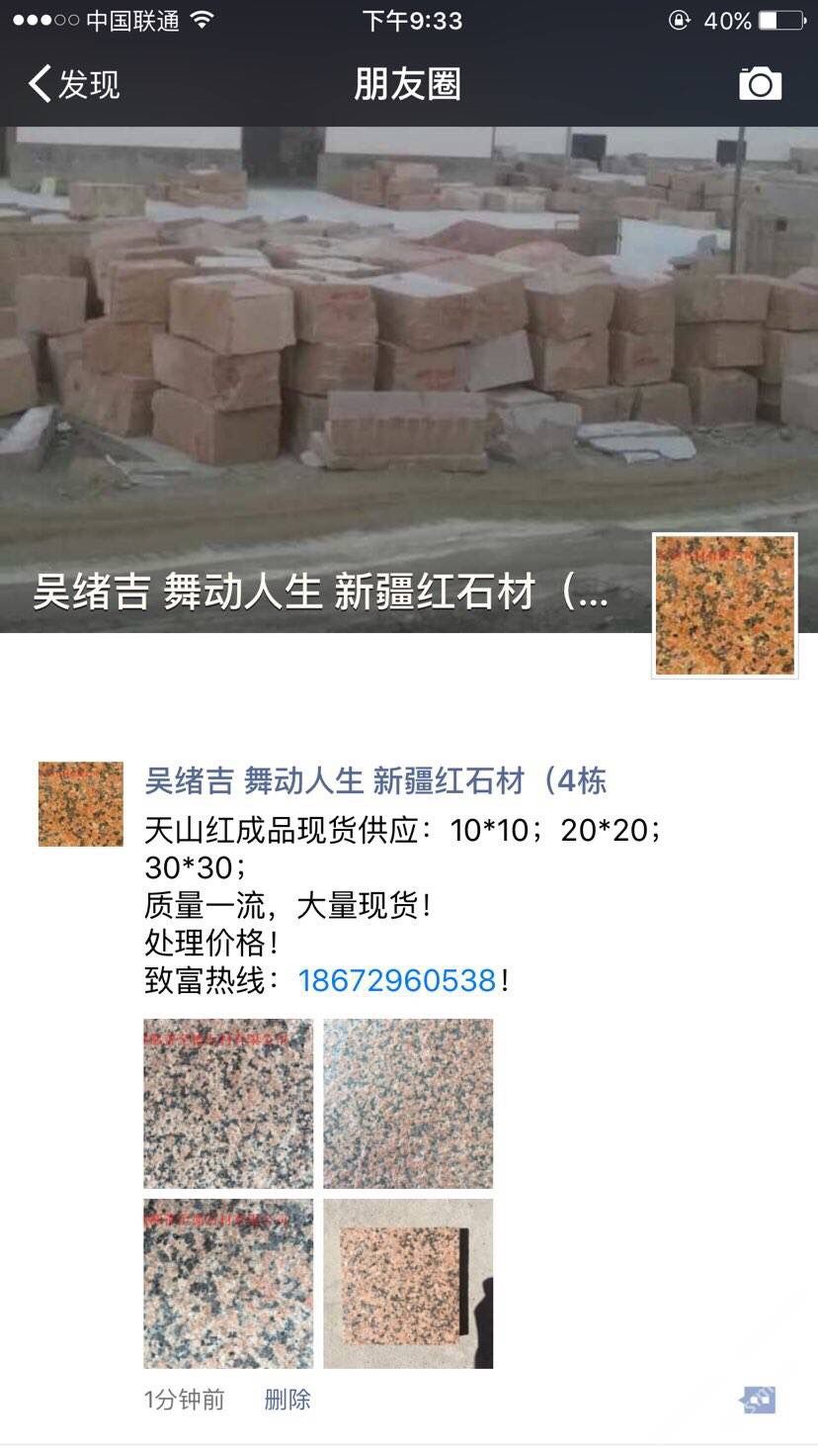 鄯善縣至德石業(yè)有限公司位于美麗的葡萄之鄉(xiāng)~新疆吐魯番鄯善縣鄯善石材工業(yè)園。本公司主要經(jīng)營(yíng)天山紅,新疆紅,鄯善紅,新疆黃,雪蓮花,灰麻等各類新疆石種,擁有先進(jìn)的生產(chǎn)設(shè)備, 雄厚的技術(shù)力量,是一家集礦山開采,石材加工,銷售于一體的多年老品牌石材公司。本公司還設(shè)石材銷售點(diǎn)于各個(gè)大型建材市場(chǎng),廣東云浮市思勞,廣東云浮市珠洞,福建省水頭鎮(zhèn)閩南建材市場(chǎng)。承諾滿足不同地區(qū)的采購(gòu)商多種需求。我們期待您的來(lái)電,竭誠(chéng)歡迎新老客戶共創(chuàng)雙贏。