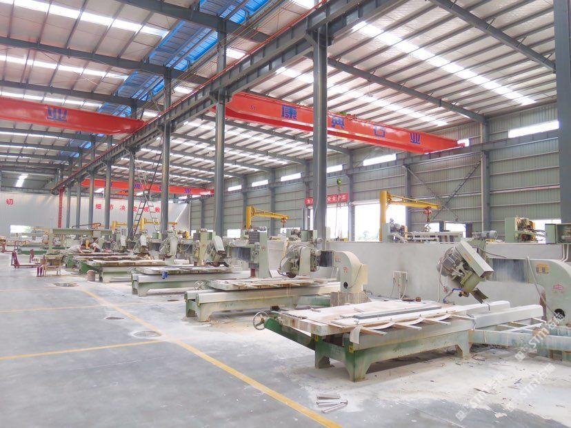 康典石業(yè)江蘇有限公司位于南通東升國(guó)際石材產(chǎn)業(yè)城內(nèi),購(gòu)置土地50余畝,占地面積: 34366m,廠房面積23000m,各類石材加工先進(jìn)設(shè)備80多臺(tái)(套),各類技術(shù)人員及安裝工人500余名。康典石業(yè)是集石材國(guó)際貿(mào)易、一次荒料加工、二次精品加工以及一流施工安裝為一體的大型石材企業(yè)。\\\