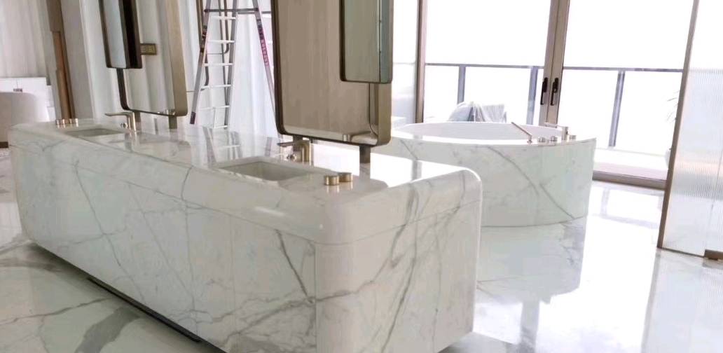 意大利雪花白卡拉拉白,背景,大廳,吧臺,墻面均有立體感!