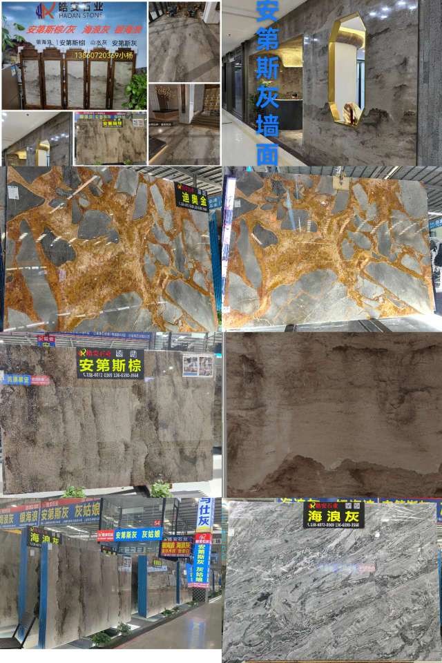 皓安石業(yè):主營(一):→安第斯棕~山水灰~水墨棕,其紋路是安第斯山脈連綿不斷,雄偉壯觀,大自然的鬼斧神工之水墨畫般層次分明,若隱若現(xiàn)似山似水又似景的灰色天然大理石…主營(2):海浪灰→銀海浪,波濤灰~其紋理變化莫測,猶如海納百川,呼嘯而來,卷起千重浪,氣勢恢宏!自然寫意,不拘章法,大氣而靈動適用于各種高檔場所的異型拼花、電視背景墻、各種吧臺等…是工裝家裝理想的裝飾材料…