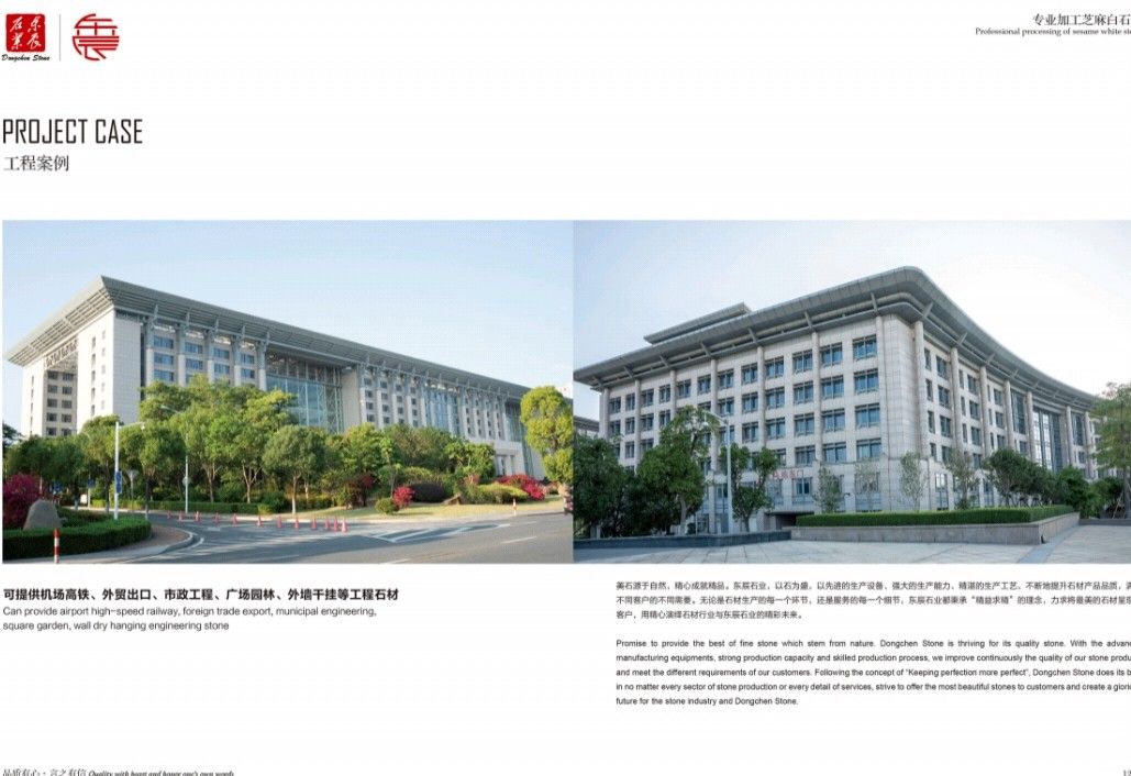 主營(yíng):承接高鐵機(jī)場(chǎng)、外墻干掛、廣場(chǎng)別墅、市政工程和外貿(mào)出口等各種工程板。 主營(yíng)芝麻白G603、芙蓉白G602火燒面、光面、荔枝面、斧剁面、噴砂面、拉絲面、菠蘿面,水溝蓋板、雕刻板、路沿石、蘑菇石、擋車石、馬蹄石、冰裂紋、圓球、染色板等