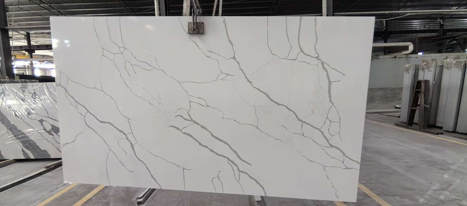 2018年,公司采用獨特的工藝技術配方,研制開發(fā)了多系列、多花色的高檔石英石板材,主要材料為石英石晶體、樹脂和微量顏料等,通過真空高壓技術聚合,再經(jīng)過復雜的表面拋光工藝,使其具有天然石材的質(zhì)感和表面光澤度,并且比天然石材質(zhì)地堅硬、緊密,石英石具有比其它材料更優(yōu)良的耐磨、耐壓、耐高溫、抗刮傷、抗腐蝕、防滲透、抗老化、無輻射等特性;表面平整、光亮、色彩艷麗豐富,因此,被廣泛應用于家庭室內(nèi)裝修,高檔櫥柜臺面,實驗室化驗室操作臺,酒店、醫(yī)院、商業(yè)綜合體、機場、寫字樓、酒店餐飲教育研究、醫(yī)療機構等場所的地面、墻面及各種工作臺面,其出眾的表面物理化性能和使用性能是其它材料所望塵莫及。