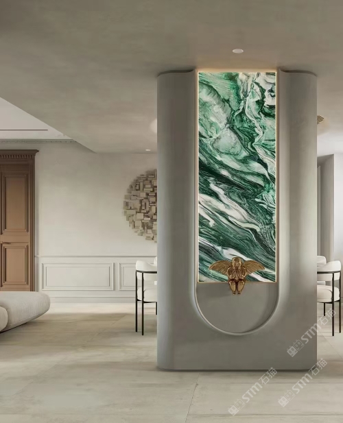 發(fā)布信息: 佰達(dá)奢石「挪威綠」 編號: BD-22097 規(guī)格:2700x1550x18mm 「挪威綠」象征著生命力的綠色為基底,純潔的白色水晶和黑色紋理穿插其中,看上去像一副油畫一般,具有很強的視覺沖擊感,藝術(shù)氣息濃厚,不論是作為桌面還是玄關(guān),都能給溫暖的家增添色彩,盡顯,奢華。