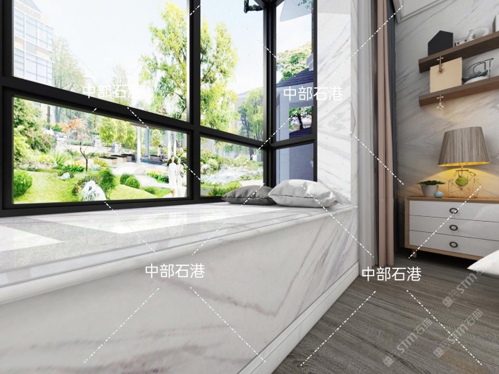 爵士白背景墻、樓梯、衛(wèi)浴上面、飄窗臺面