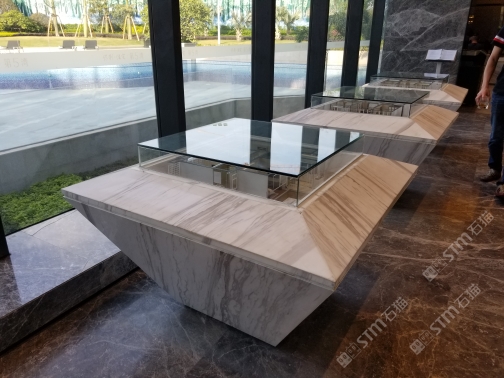 發(fā)布信息: 水頭濱海保利售樓部房屋模型底座,既然是重要的場合關(guān)鍵的部位,怎能少了大理石中的~老礦爵士白呢?紋路紋理分明,晶瑩剔透的白,唯有老礦爵士白!贊!