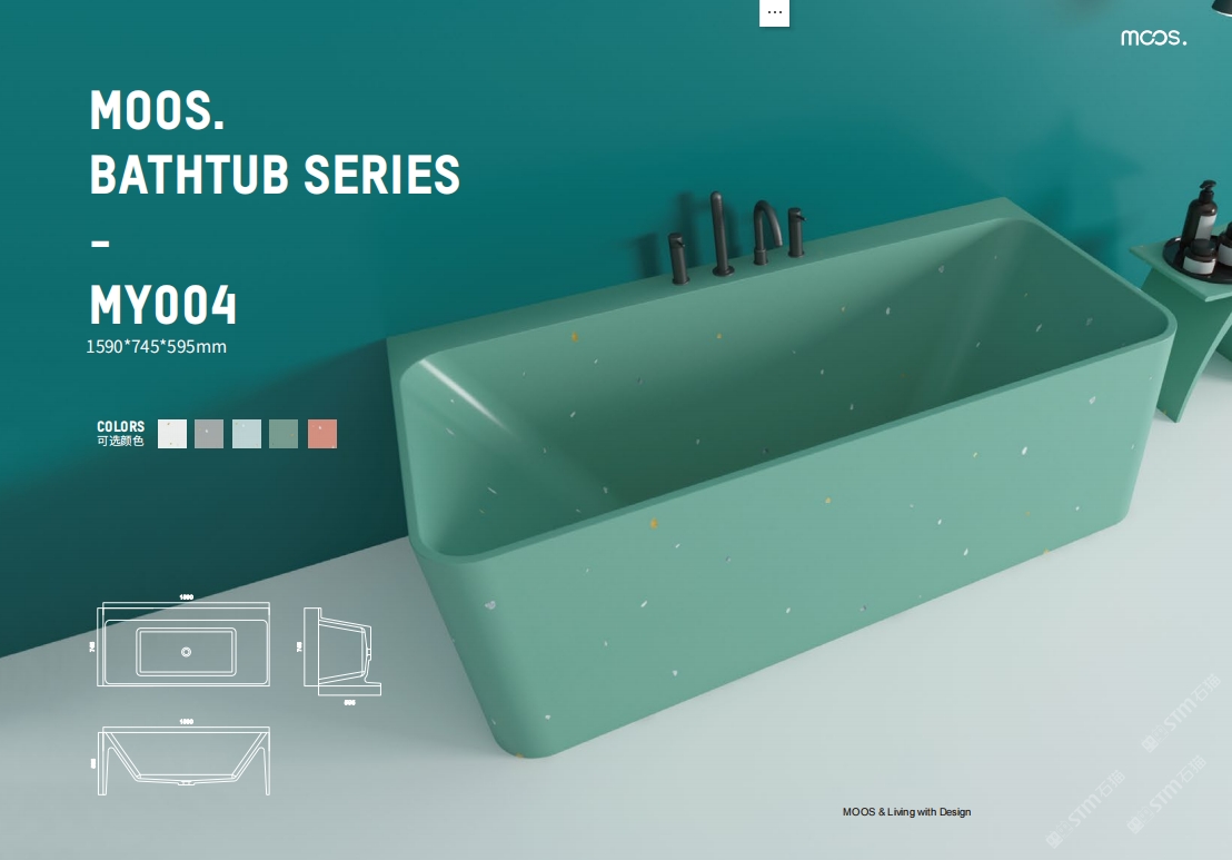 「MOOS魔石衛(wèi)浴」無(wú)機(jī)水磨石一體化浴缸系列