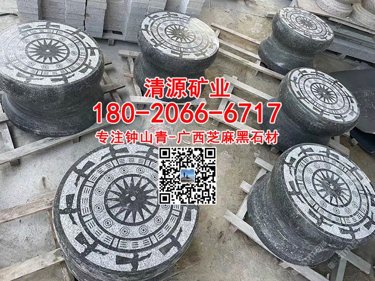 廣西芝麻黑654石雕石墩?qǐng)A凳石凳鐘山青工廠加工定制