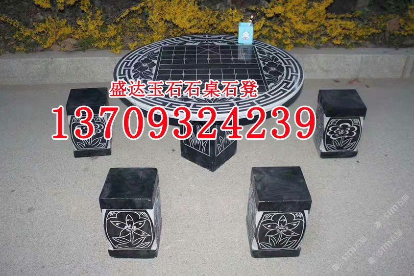芝麻黑花崗巖雕刻石桌石椅石凳g654石材象棋桌子