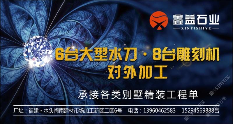 鑫益石業(yè) 聯(lián)系人:呂小姐    139****2583 查看 手機(jī)號(hào)碼:無 主營范圍: 大板批發(fā)、水刀拼花、石材雕刻、 企業(yè)地址:福建南安閩南建材第一市場加工新區(qū)42-48號(hào)
