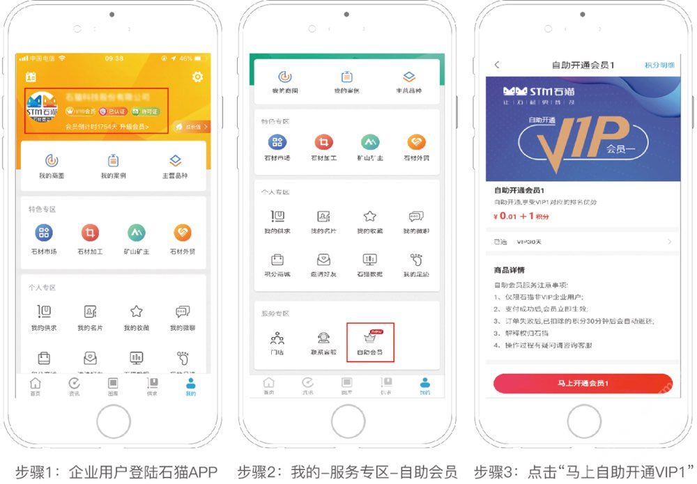 企業(yè)用戶(hù)自助開(kāi)通VIP1會(huì)員,不用聯(lián)系客服,不用聯(lián)系市場(chǎng)人員,在“石貓-積分商城-VIP會(huì)員服務(wù)”自助購(gòu)買(mǎi)支付即可開(kāi)通。