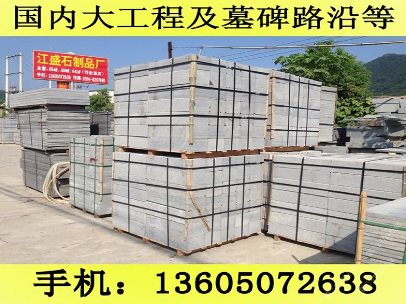 發(fā)布信息: 長泰縣江盛石制品廠(王先生 手機(jī)微信:13605072638)位于福建長泰的石材之鄉(xiāng)--林墩后爐工業(yè)區(qū),擁有自己大型的G654礦山,在天津與杭州有經(jīng)銷部,是一家集礦山開采、生產(chǎn)加工及經(jīng)銷部為一體的專業(yè)石制品供應(yīng)商.距廈門市60公里,離郭坑火車站僅40公里,不論是汽運(yùn),船運(yùn)或者鐵路運(yùn)輸都十分便捷. 公司主要經(jīng)營G654芝麻黑,G655#,G614#,G603#,銹石等磨光板、火燒板、荔枝面、龍眼面、蘑菇石、機(jī)刨石、路沿石、滾石、盲道石及異形加工。G654#石材被廣泛用于鋪設(shè)廣場、公園、街道、停車場等場所,具有防滑、抗酸堿、耐磨、耐壓等優(yōu)點,可拼鋪成各種幾何圖案,美觀實用,符合現(xiàn)代建筑人與自然相結(jié)合的審美情趣,是工程建設(shè)、室內(nèi)外裝飾的建材,還可根據(jù)客戶需求加工石雕、影雕、碑石、墓石等工藝品。產(chǎn)品遠(yuǎn)銷香港、臺灣、日本、東南亞、歐洲等地。北京東方廣場建筑群、上海世紀(jì)大道、廈門國際會展中心地面工程等均采用了G654#等石材產(chǎn)品。 公司自創(chuàng)建以來,秉承重合同守信用,質(zhì)優(yōu)價廉的經(jīng)營理念,視客戶的需求為我的需求,客戶的滿意為我的滿意,贏得了客戶的一致好評.真誠歡迎新老客戶來電來函洽談.王先生聯(lián)系手機(jī):13605072638