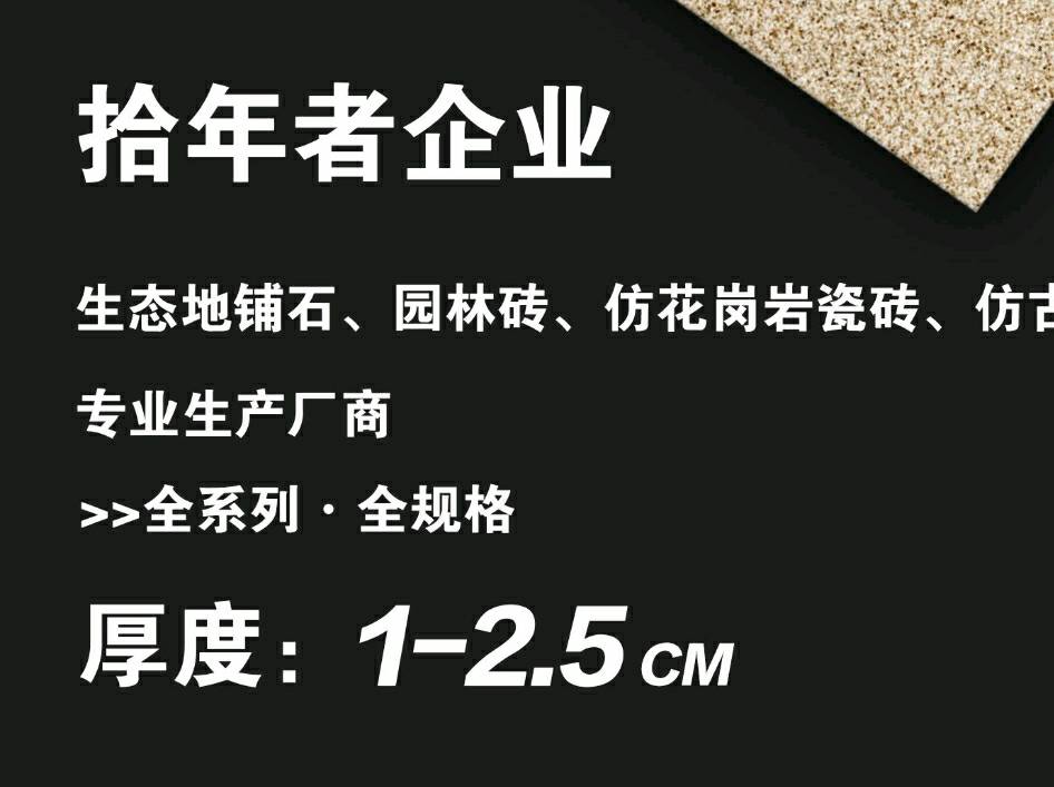 發(fā)布信息: 拾年者企業(yè)-生態(tài)地鋪石系列 厚度:1.0/1.2/1.5/1.8/2.0cm 規(guī)格:30*60/60*60/60*90/60*120 適用:園林地鋪/市政工程/幕墻干掛 靈活定制 專線生產 工藝齊全
