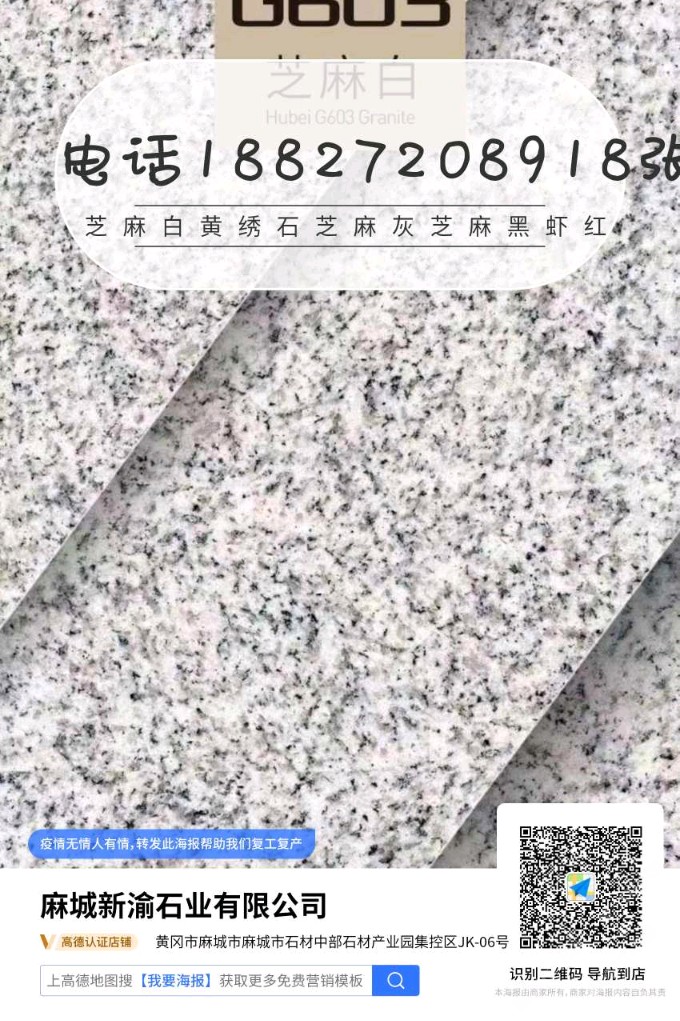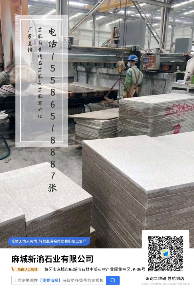 發(fā)布信息: 芝麻白…黃繡石…芝麻灰…芝麻黑 中國(guó)黑 蝦紅……廠礦直銷 價(jià)格優(yōu)惠 主營(yíng)干掛,地鋪,路沿石,蘑菇石,火燒面,光面,荔枝面,機(jī)切面,自然面,異形加工等各種規(guī)格板材。承接園林,廣場(chǎng)外墻干掛等各種工程應(yīng)用板材。規(guī)格齊全,薄利多銷 保質(zhì)保量,歡迎各地老板前來(lái)參觀考察 地址…湖北省麻城市…中部石材產(chǎn)業(yè)園。電話15586518887&17671069740張先生(微信同號(hào))