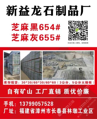 發(fā)布信息: 長(zhǎng)泰縣新益龍石制品廠位于“中國(guó)石材g654石材生產(chǎn)基地”——福建省漳州市長(zhǎng)泰縣林墩工業(yè)區(qū)。本廠集礦山開采, 石材加工,工程訂單及進(jìn)出口貿(mào)易于一體;擁有成套先進(jìn)的石材設(shè)備,掌握先進(jìn)的石材加工技術(shù),嚴(yán)格 控制每道生產(chǎn)工序,努力做到以的生產(chǎn)成本生產(chǎn)出能夠讓客戶滿意的產(chǎn)品,且供貨及時(shí),價(jià)格優(yōu)惠 ,能承接大數(shù)量的定單。經(jīng)過(guò)幾年發(fā)展,本廠擁有g(shù)654礦山,專業(yè)生產(chǎn)、加工國(guó)內(nèi)外花崗巖板材。 主營(yíng):芝麻黑g654 兼營(yíng):芝麻灰g655、芝麻白g623、灰麻g688、黃銹石g682等花崗巖品種板材及各種異形;加工方式多樣化:磨光板、毛板、厚板 、薄板、規(guī)格板、火燒板、地鋪石、小方塊、自然板、拉絲板、洗衣板、染板、菠蘿面、機(jī)切板、大板 、荔枝面、路沿石、臺(tái)面板、拋光板、線條、盲人石、滾石及各種建筑工程配套用石的生產(chǎn)、加工和銷 售。產(chǎn)品不僅暢銷國(guó)內(nèi)各大城市,還遠(yuǎn)銷到美國(guó),加拿大,英國(guó),韓國(guó),香港,臺(tái)灣等國(guó)家和地區(qū)。 新益龍石業(yè)以“質(zhì)量為本、服務(wù)至上、信譽(yù),客戶”為經(jīng)營(yíng)理念,真誠(chéng)期待著與您合作,攜手共 創(chuàng)雙贏,共享石材業(yè)輝煌明天。竭誠(chéng)歡迎國(guó)內(nèi)外廣大朋友來(lái)人來(lái)函洽談業(yè)務(wù),相互合作,共同發(fā)展! 洽談熱線:13799057528(連)
