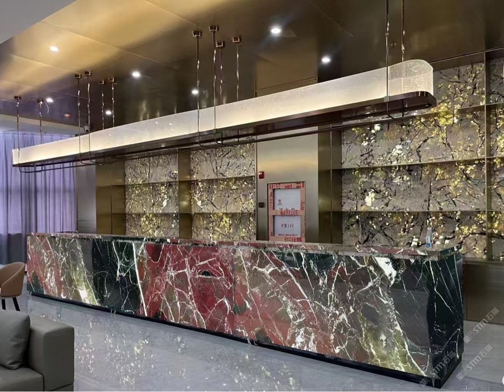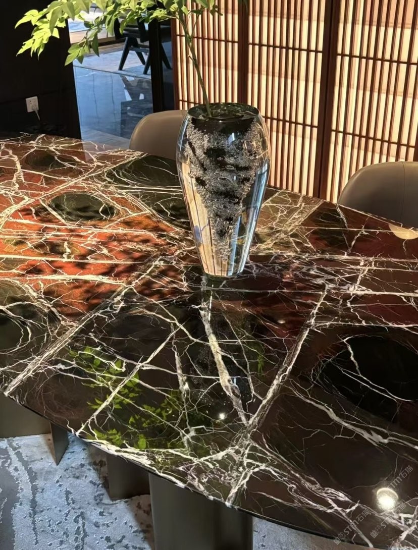 品種:紫羅紅(RosaLevanto),又名佛羅倫薩紫、納秋綠 產(chǎn)地:土耳其 花紋:紫羅紅花紋十分明顯,整體感強(qiáng),大片紫紅色塊之間夾雜著或純白或翠綠或深紅的線條色塊,形似國畫中的梅枝招展;色調(diào)高雅、氣派大方,蘊含大紫大紅之吉意。 風(fēng)格:沉實的質(zhì)感,妖嬈的紫羅紅,色澤狂野奔放,彰顯家室的富麗堂皇,漫步家中,就如在豪華的殿堂中流連忘返。 評價:假如紅色是一種熱烈,那么紫色則是一種無法抗拒的魅惑。熱情、奔放、驚艷……充滿土耳其獨有情調(diào)的紫羅紅,色澤艷麗的石紋纏綿交錯,將紫的魅惑、紅的氣度、紅的純粹,體現(xiàn)的。擁有艷麗的色彩、跳躍的石紋,具有土耳其古典之韻,筑就家具中的上等選材,傳承貴胄尊榮,綻放紅之魅惑。 適用:內(nèi)裝,花線、門套、實心柱石、桌面、臺盆、窗臺等。被廣泛用于室內(nèi)墻、地面的裝飾等。