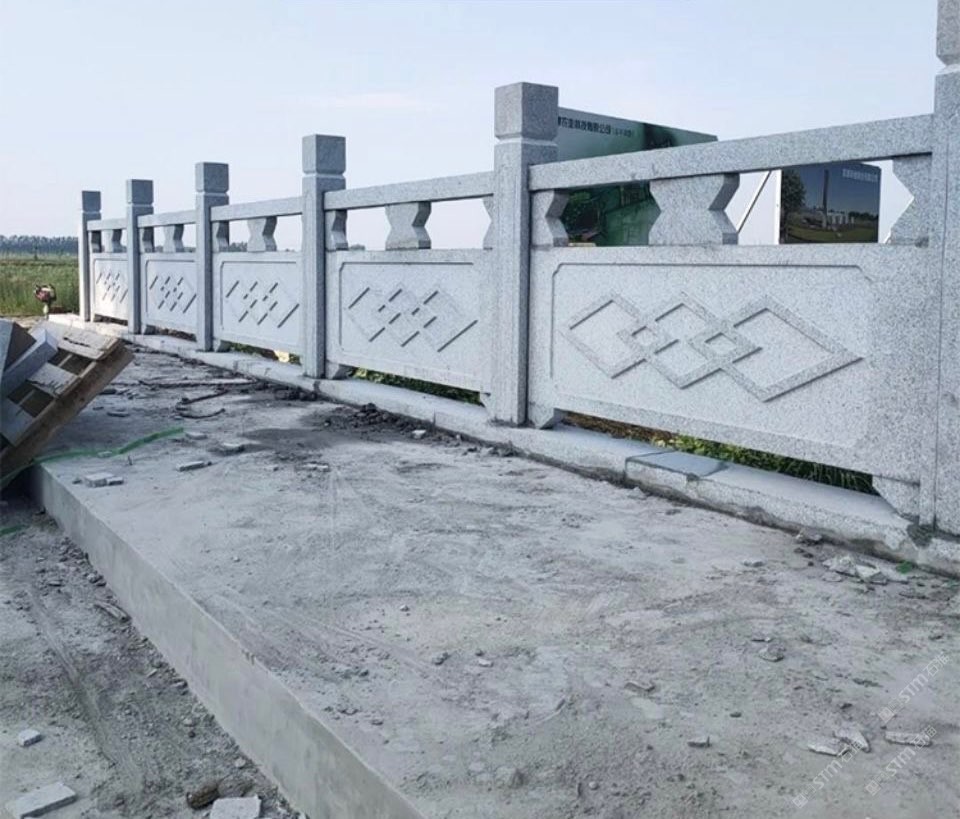河道圍欄,欄桿 石頭 護欄 河欄。