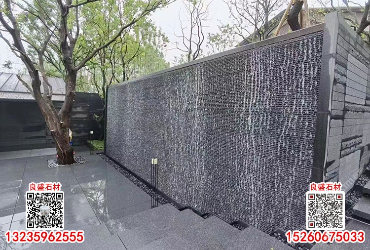 芝麻黑花崗巖流水石G654水幕墻流水板景觀墻文化石