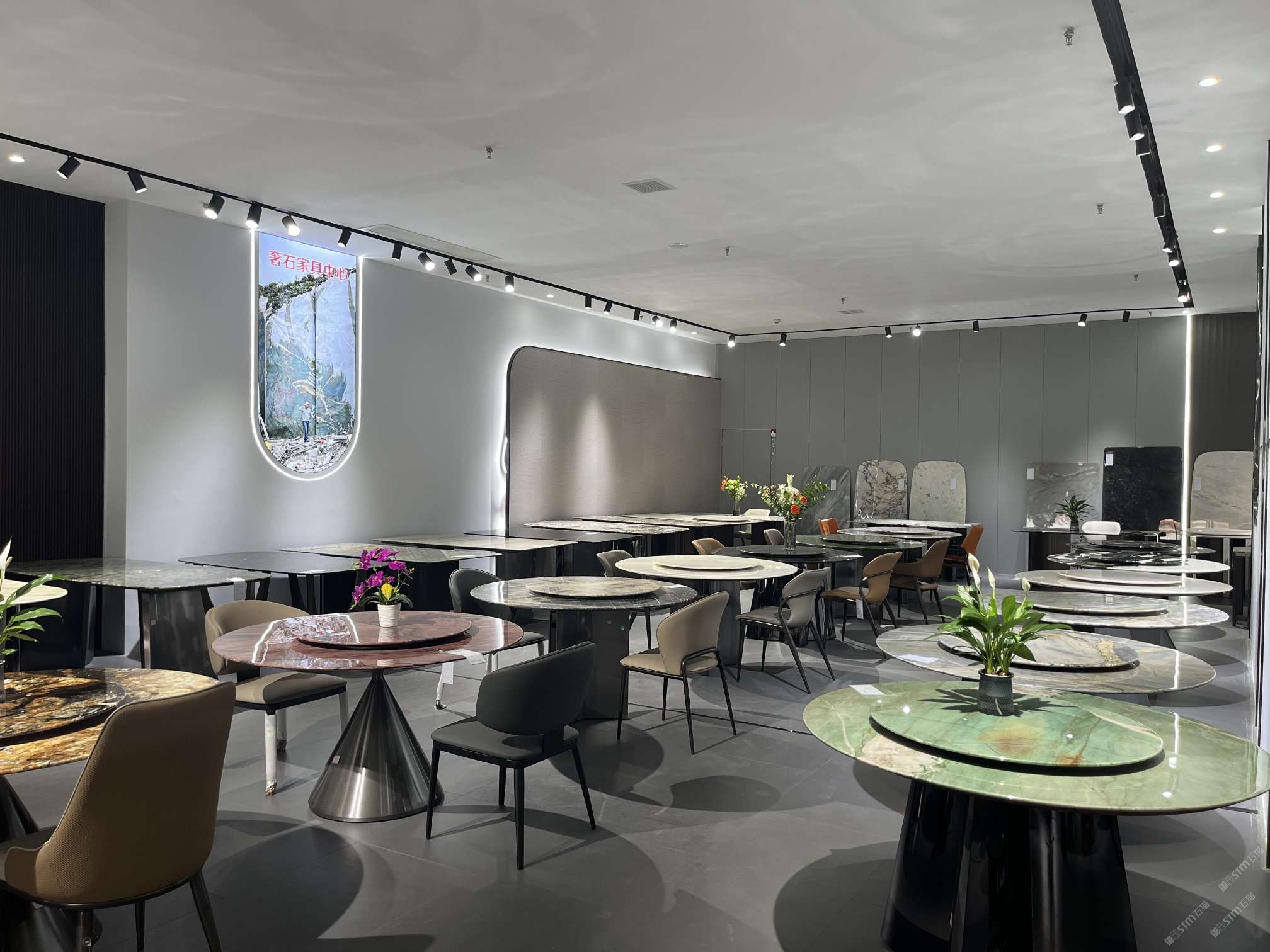 實(shí)木結(jié)合五金奢石餐桌:芬迪白玉#水頭奢石家居中心