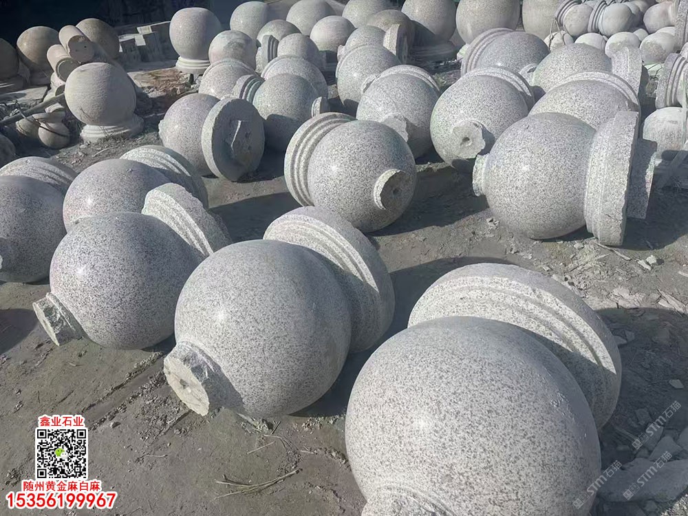 湖北白麻擋車石球隨州白麻圓球路障石球石墩子黃金麻