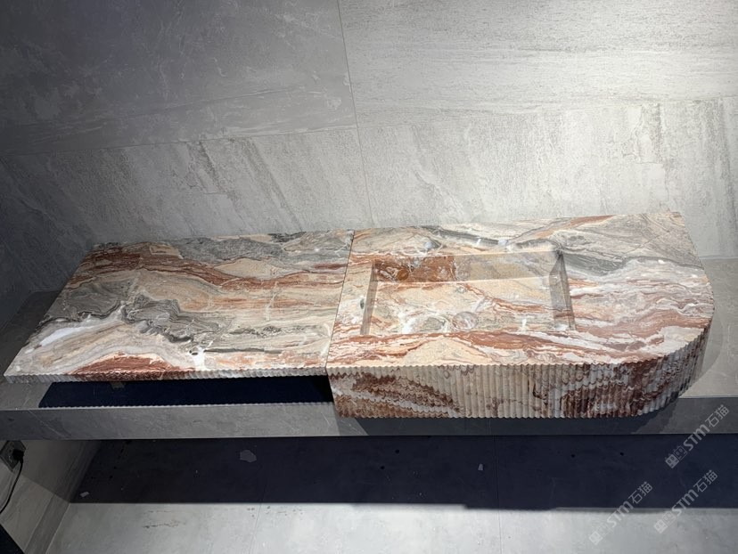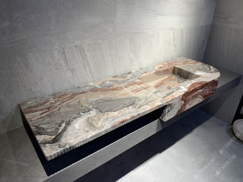 芬迪紅一體盆 石材洗手盆柱盆石材衛(wèi)浴家居