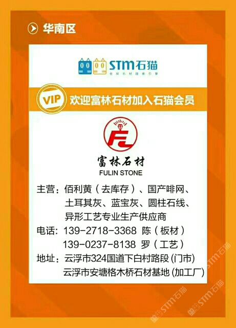 云浮富林石材 聯(lián)系人:中國(guó)啡網(wǎng)    139****3368 查看 139****3368 查看 主營(yíng)范圍: 大板批發(fā)、荒料、大理石加工、 企業(yè)地址:廣東云浮云浮市安塘雙龍村路口富林石材(富鵬石材)