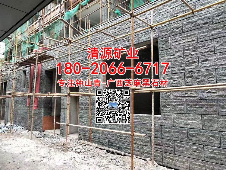 廣西鐘山青石材自然面背景墻金點(diǎn)綠劈裂石廣西芝麻黑石