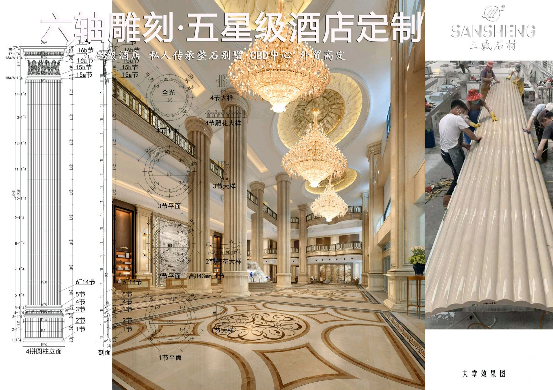 發(fā)布信息: 聯(lián)系:13489555666 黃 三盛集團丨三盛圓柱主營:魚肚白、中花白、雅士白、大花白、卡拉拉白、雪花白、南斯拉夫白、細花白、爵士白品種的圓柱、弧形板、羅馬柱、雕刻、線條、旋轉(zhuǎn)樓梯、吧臺水景沙盤、整棟傳承大厝、別墅,來料智能掃描加工。