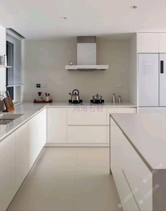 純白石英石廚房臺面墻面