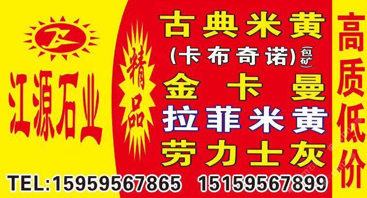 發(fā)布信息: 【江源石業(yè)】超大量 1??金卡曼 2??古典米黃&卡布奇諾 3??拉菲米黃&新莎安娜、 4??勞力士灰、5??西西里灰… 業(yè)務(wù)銷售點(diǎn)??: ??澳盛大板市場(chǎng)8棟1-4區(qū) ??濱海中閩市場(chǎng)9通道79區(qū)