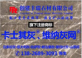王生石材主營(yíng)產(chǎn)品:維也納灰,新土耳其灰(老礦),土耳其灰(拿鐵灰),土耳其灰(深色),波斯灰(AP礦),拿鐵灰(新西西里灰),新拿鐵灰,新土耳其灰(拿鐵灰),比薩灰1,深啡網(wǎng),深木紋(巖板),啡網(wǎng)1,啡慕斯,維也納灰(國(guó)產(chǎn))企業(yè)地址:廣東云浮海岸石材城