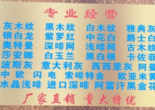 順華大板市場(chǎng)主營(yíng)產(chǎn)品:凱撒灰,圣誕米黃,云多拉灰,月桂銀灰,城堡灰,卡斯特灰,意大利灰,古堡灰8,意大利灰28,瑪雅灰1,新中歐米黃,新中歐米黃1,中歐米黃(老礦),歐典米黃,太平洋暖灰1,太平洋暖灰,橄欖灰(新礦),新奧特曼,黃金灰,白玉蘭,富貴金龍,奧特曼,奧特曼灰,塞浦路斯灰(淺色),愛(ài)琴?;?,西西里灰5,北極光(土耳其礦),拿鐵灰2,迪奧灰,水墨灰,羅馬洞,白洞石,雅鉑灰,奧蘭多灰(老礦),愛(ài)瑪仕灰1,愛(ài)馬仕灰,愛(ài)瑪仕灰2,法國(guó)灰2,羅馬尼亞灰,白金沙,卡特木紋1,蘇格蘭灰,星辰灰,雅典灰(夢(mèng)幻灰),菩提灰,美尼斯灰,英倫灰,羅曼蒂克灰,爵士白,奧巴馬木紋,直紋白玉,阿曼米黃,西西里灰,西西里灰1,西西里灰2,西西里灰3,西西里灰4,新西西里灰(AD礦),新西西里灰,拿鐵灰(新西西里灰),北極光,北極光4,北極光5,北極光(巴圖礦),北極光(宇杰礦),新云多拉灰10,愛(ài)琴海灰,愛(ài)琴?;?,愛(ài)琴?;遥c(diǎn)狀),愛(ài)琴?;遥ì斞呕遥?愛(ài)琴?;遥⊿D礦),愛(ài)琴?;遥ㄍ炼涞V),冬蟲(chóng)夏草,瑪雅灰(愛(ài)琴?;摇⑿峦炼浠遥?白玉蘭1,白玉蘭2,白玉蘭3,白玉蘭4,白玉蘭(8號(hào)礦),白玉蘭(艾斯特),白玉蘭(EG礦),白玉蘭灰企業(yè)地址:福建南安水頭濱海工業(yè)區(qū)