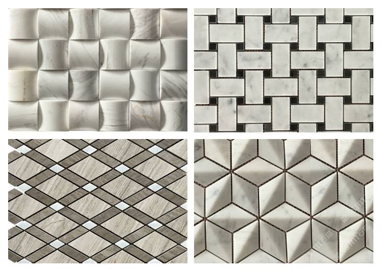 描述:石材馬賽克是將天然石材開介、切割、打磨成各種規(guī)格、形態(tài)的馬賽克塊拼貼而成的馬賽克,是最古老和傳統(tǒng)的馬賽克品種,最早的馬賽克就是用小石子鑲嵌、拼貼而成,石材馬賽克具有純自然、天然的質感,有非常自然的天然石材紋理,風格自然、古樸、高雅,是馬賽克家族中檔次最高的種類,根據(jù)其處理工藝的不同,有啞光面和亮光面兩種形態(tài),規(guī)格有方形、條形、圓角形、圓形和不規(guī)則平面、粗糙面等。用這種材料裝飾墻壁或者地面,既保留了天然石材本身的質樸感,又使圖案豐富。 天然大理石馬賽克是采用機切成很小顆粒,純手工拼制而成,由于馬賽克材料具有耐久性,不會因環(huán)境時間而剝落、變色,屬于高檔裝飾產(chǎn)品,色澤純正,典雅大方,具有經(jīng)久耐用、永不褪色的特點。廣泛應用于各類建筑裝修、室內裝飾,是理想的高檔裝飾產(chǎn)品。